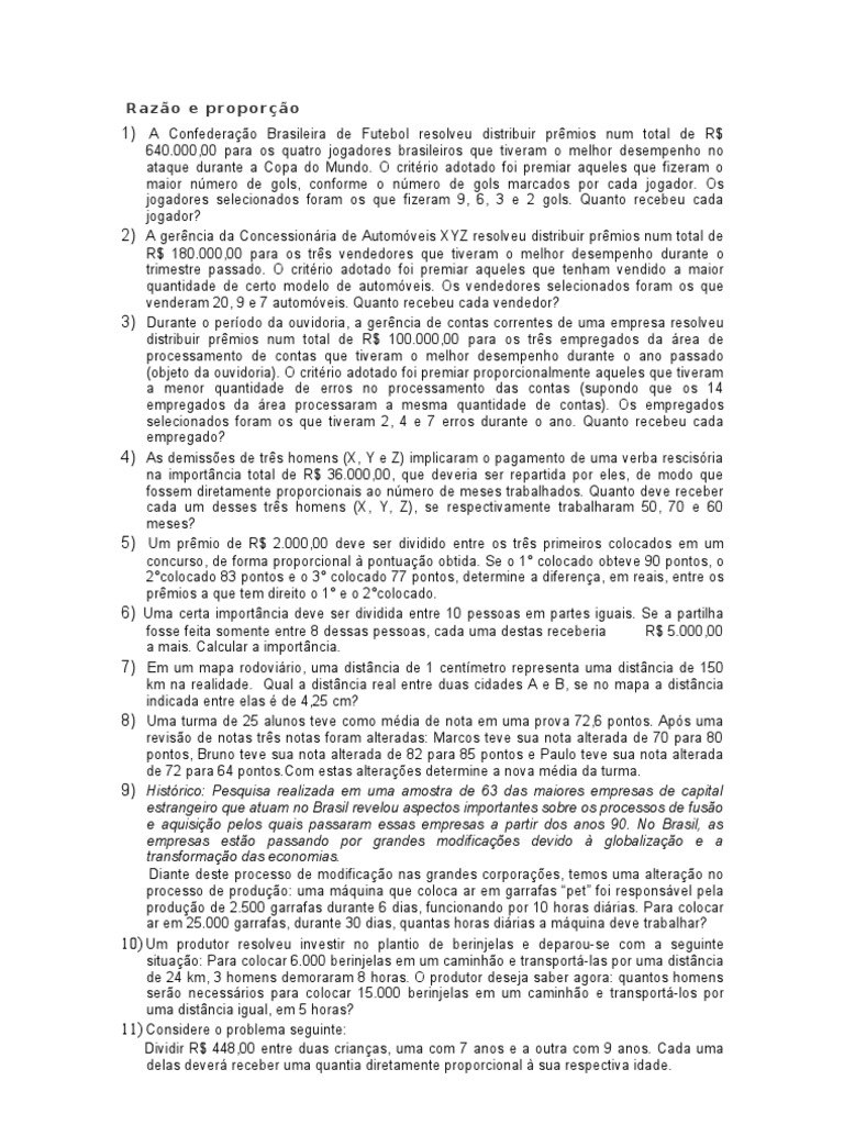 1) A Confederação Brasileira de Futebol resolveu distribuir prêmios num total de R$
