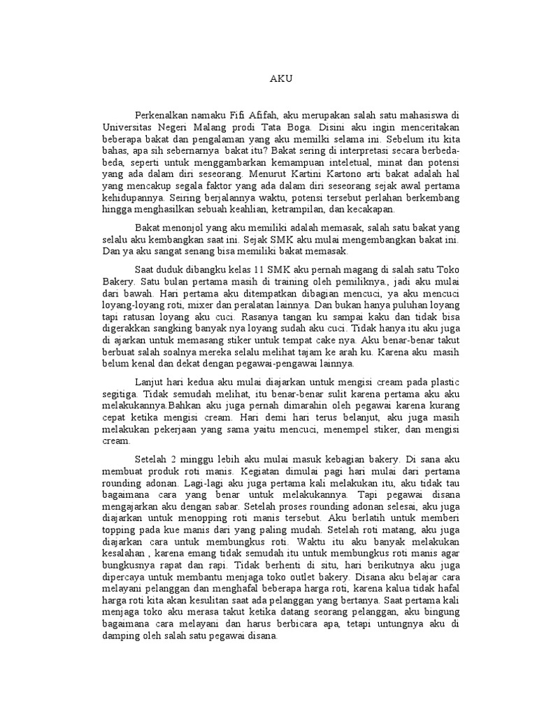 Universitas Negeri Malang prodi Tata Boga. Disini aku ingin menceritakan