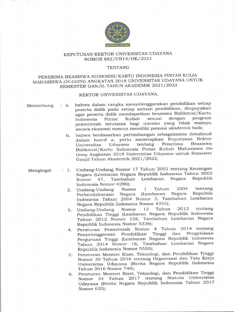 KEPUTUSAN REKTOR UNIVERSITAS UDAYANA