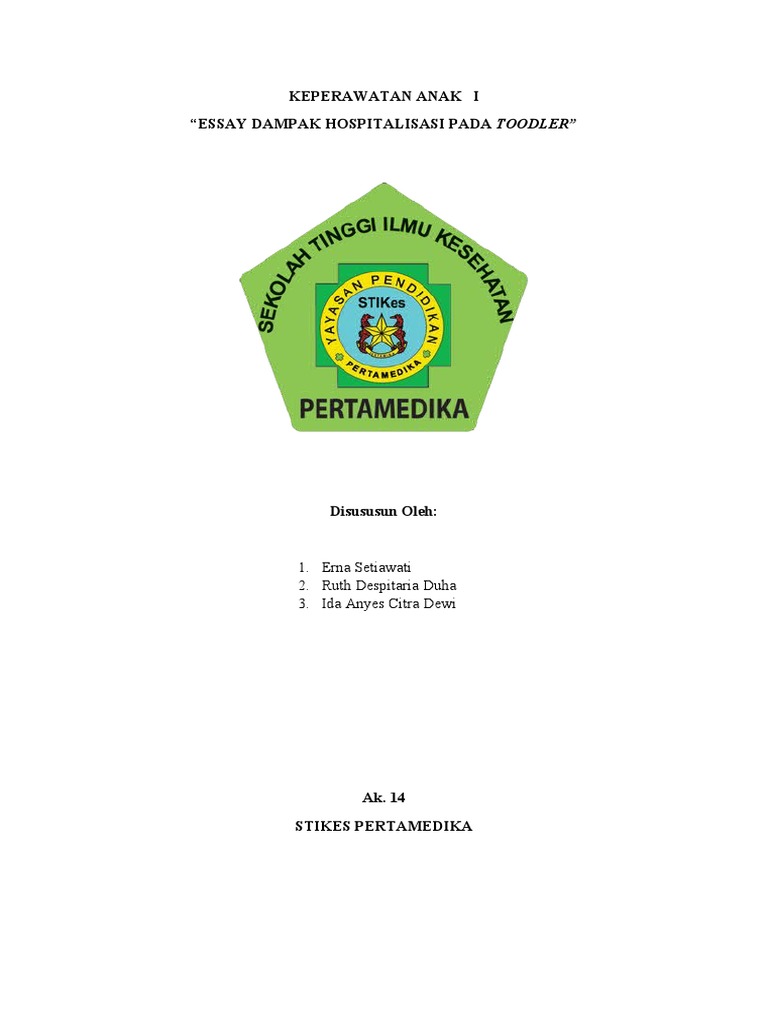 “ESSAY DAMPAK HOSPITALISASI PADA TOODLER”