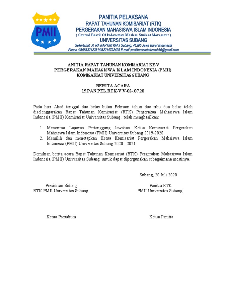 Demikian berita acara Rapat Tahunan Komisariat (RTK) Pergerakan Mahasiswa Islam