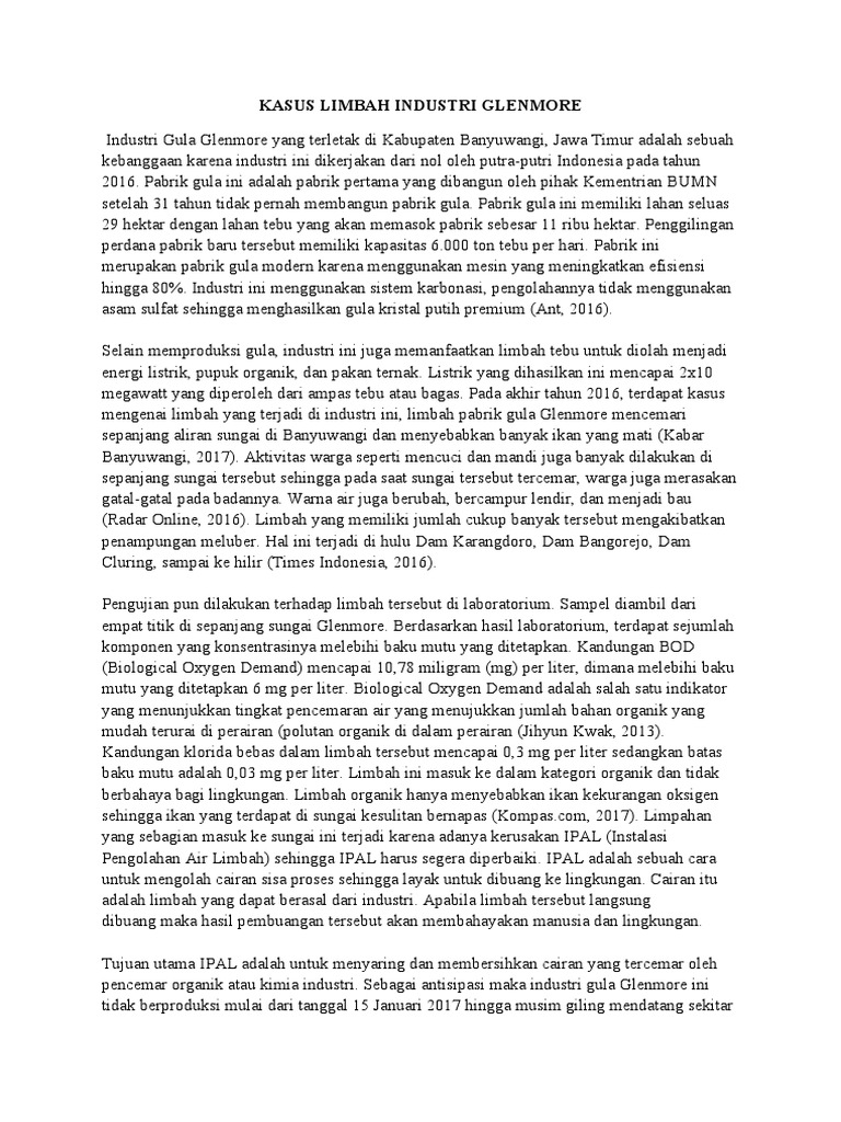 pencemar organik atau kimia industri. Sebagai antisipasi maka industri gula Glenmore ini