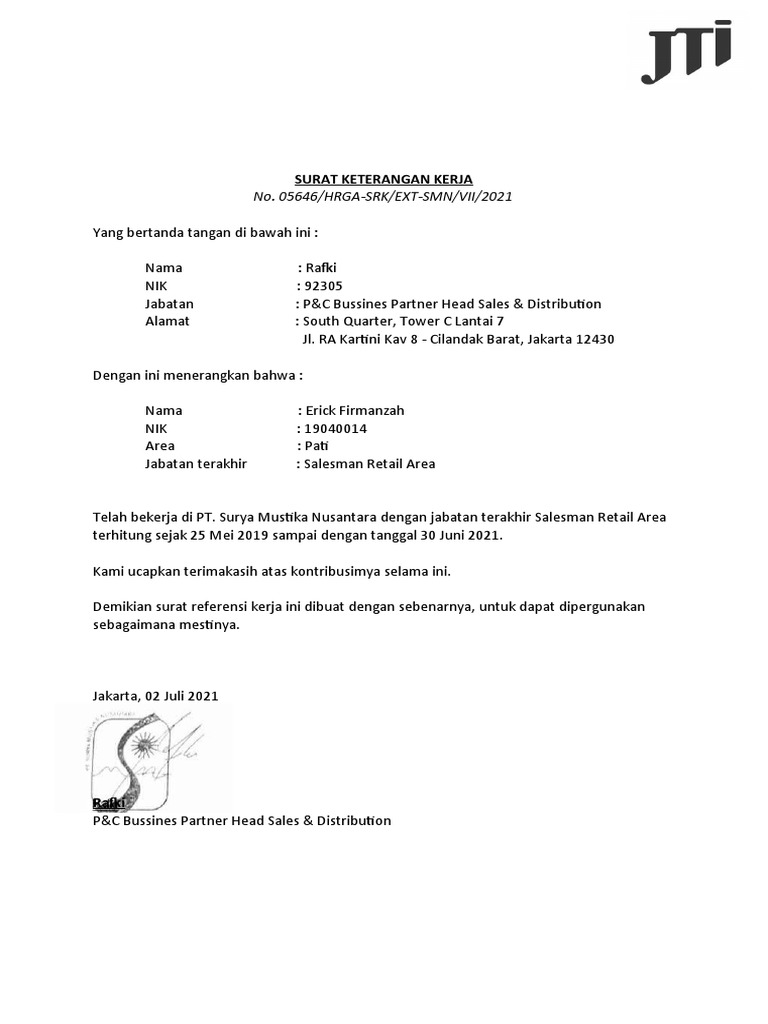 Demikian surat referensi kerja ini dibuat dengan sebenarnya, untuk dapat dipergunakan