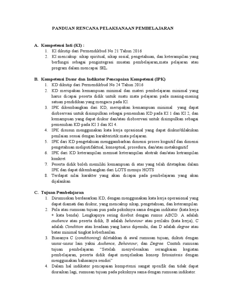 PANDUAN RENCANA PELAKSANAAN PEMBELAJARAN