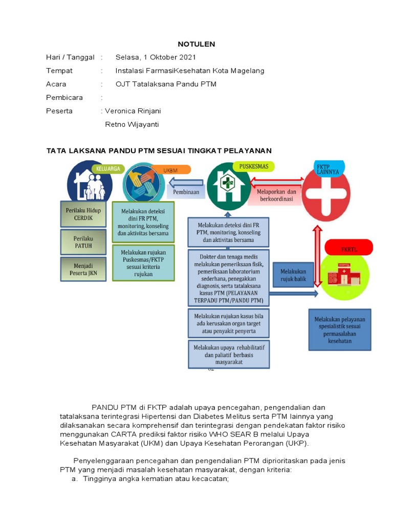 2. Pelaksanaan pencagahan dan pengendalian PTM di FKTP meliputi upaya promotif,