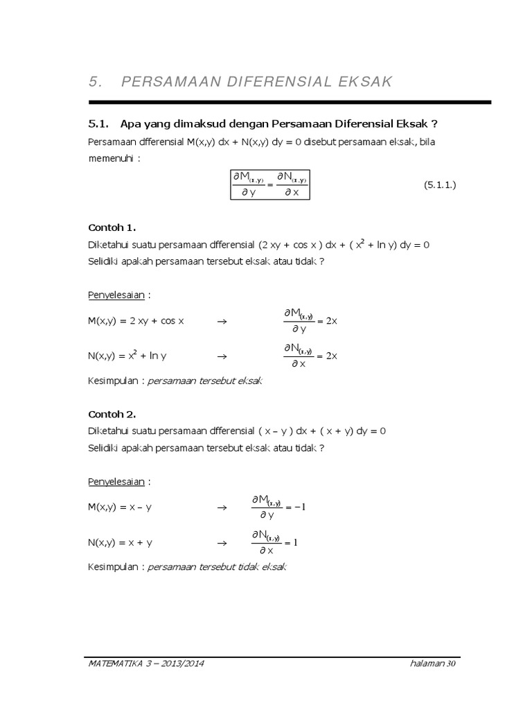 5.1. Apa yang dimaksud dengan Persamaan Diferensial Eksak ?