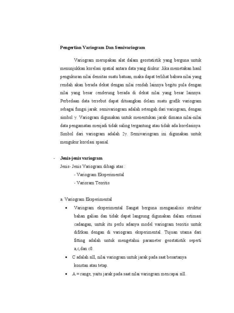 Variogram merupakan alat dalam geostatistik yang berguna untuk