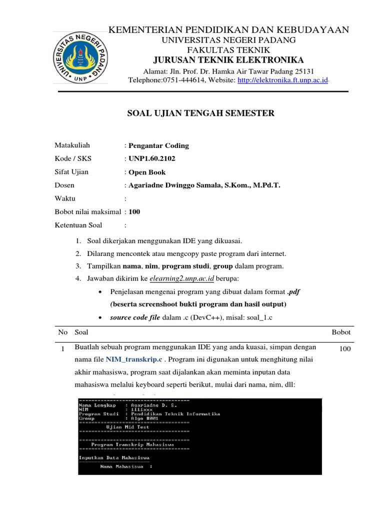 1. Soal dikerjakan menggunakan IDE yang dikuasai.