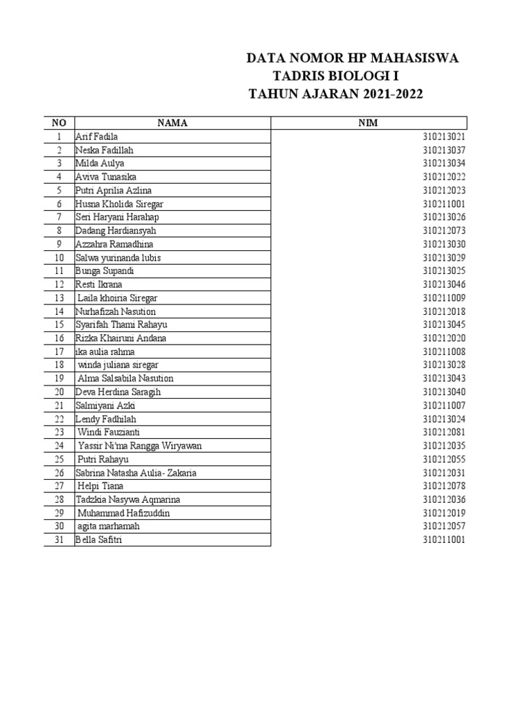 DATA NOMOR HP MAHASISWA