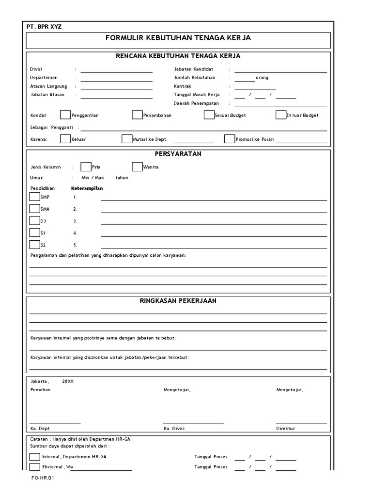 FORMULIR KEBUTUHAN TENAGA KERJA