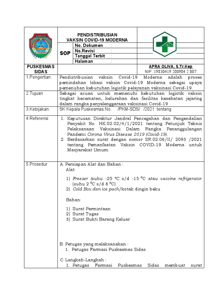 1.Pengertian Pendistribusian vaksin Covid-19 Moderna adalah proses