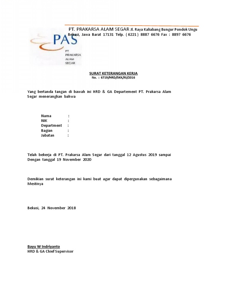 Yang bertanda tangan di bawah ini HRD & GA Departement PT. Prakarsa Alam