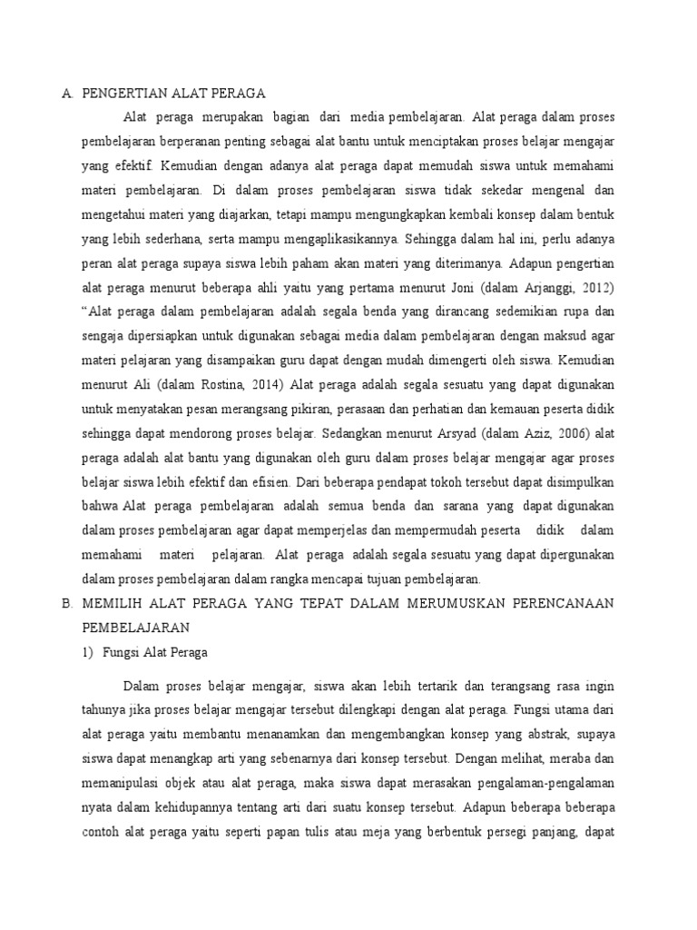 menurut Ali (dalam Rostina, 2014) Alat peraga adalah segala sesuatu yang dapat digunakan