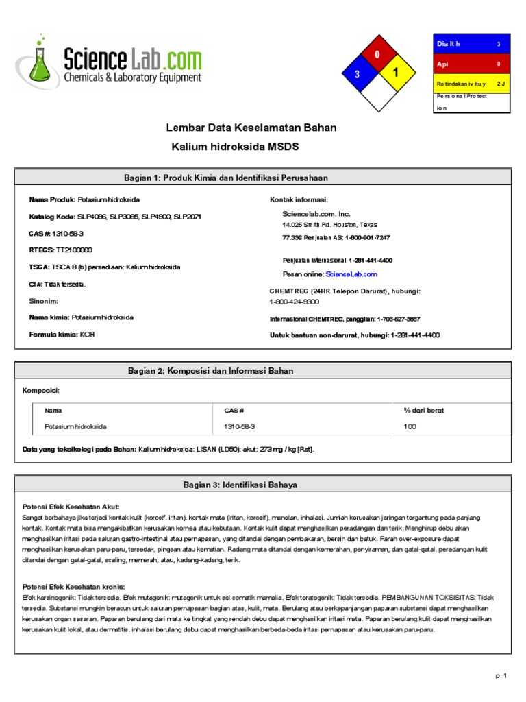 Formula kimia: KOH Untuk bantuan non-darurat, hubungi: 1-281-441-4400
