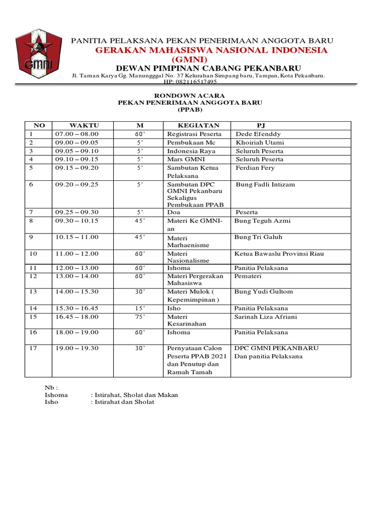 17 19.00 – 19.30 30’ Pernyataan Calon DPC GMNI PEKANBARU