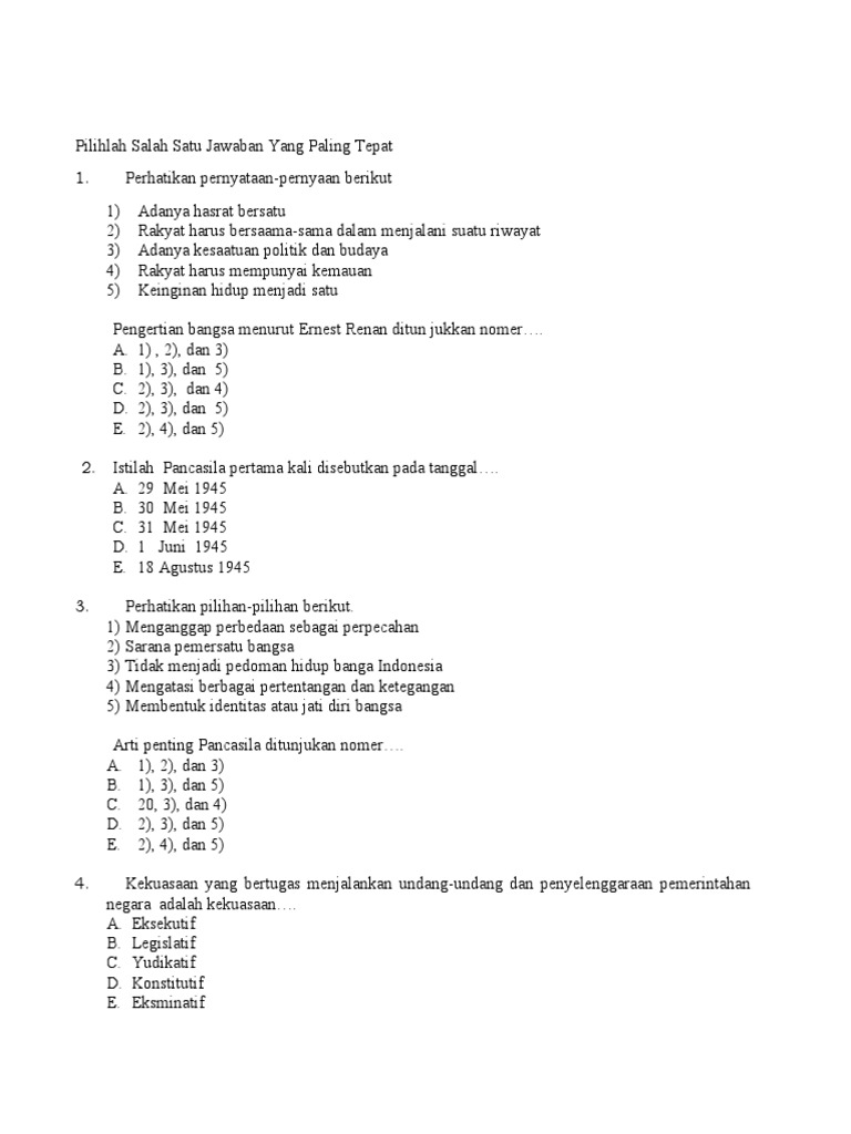 Pilihlah Salah Satu Jawaban Yang Paling Tepat