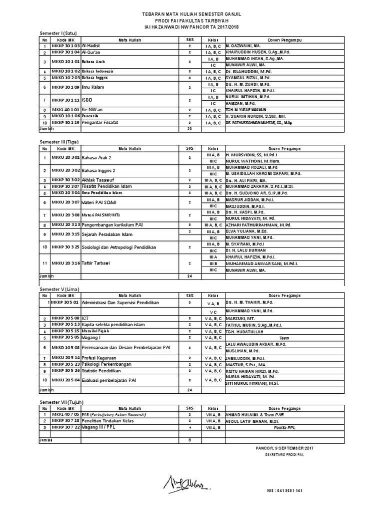 MINGGU I AB 3,15 AB 4,17 AB 5,18 X 6,16 X 10,11 X 9,12 T 8,13 T 7,14 M Manajemen Lembaga Pendidkan Islam 11 NURUL IMTIHAN, M.Pd