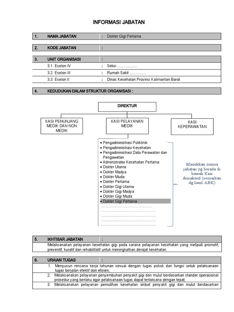 1. NAMA JABATAN : Dokter Gigi Pertama