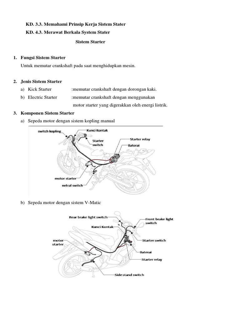 3) Tuliskan Komponen-komponen system stater sepeda motor