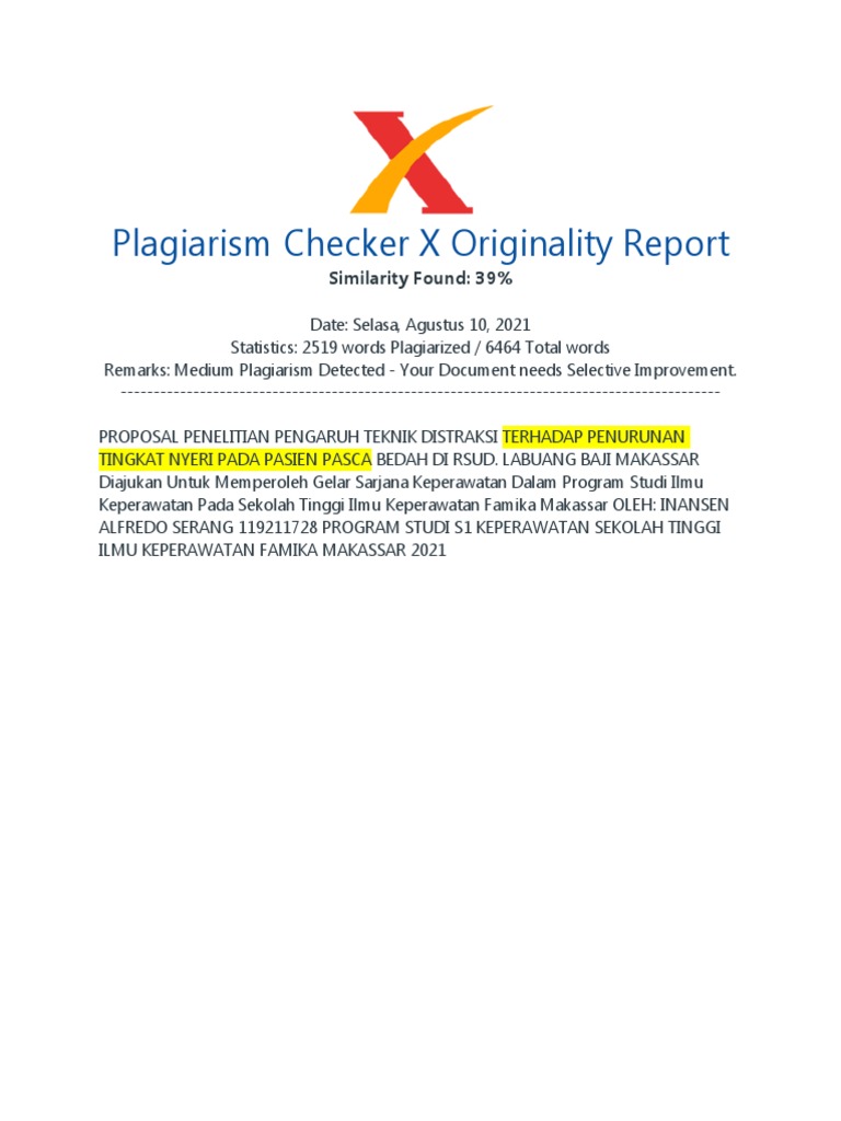 Plagiarism Checker X Originality Report
