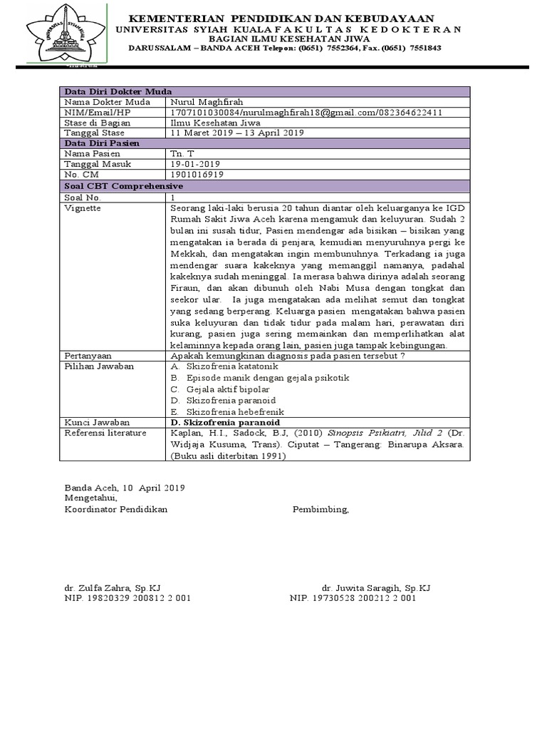 Referensi literature Kaplan, H.I., Sadock, B.J, (2010) Sinopsis Psikiatri, Jilid 2 (Dr.