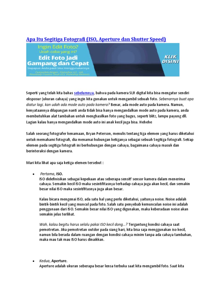 Untuk settingan ISO, Aperture dan Shutter Speed agar mendapatkan hasil foto yang bagus itu caranya