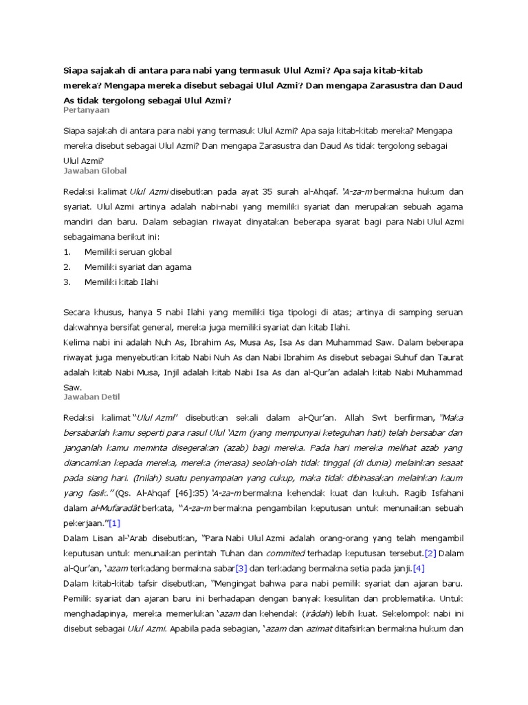 [2]. “Wa Ulu al-Azmi min al-Rusul: Alladzina ‘azamu ‘ala Amr Allah fima ‘ahada ilaihim” Lisân al-‘Arab , jil. 12, hal. 399.