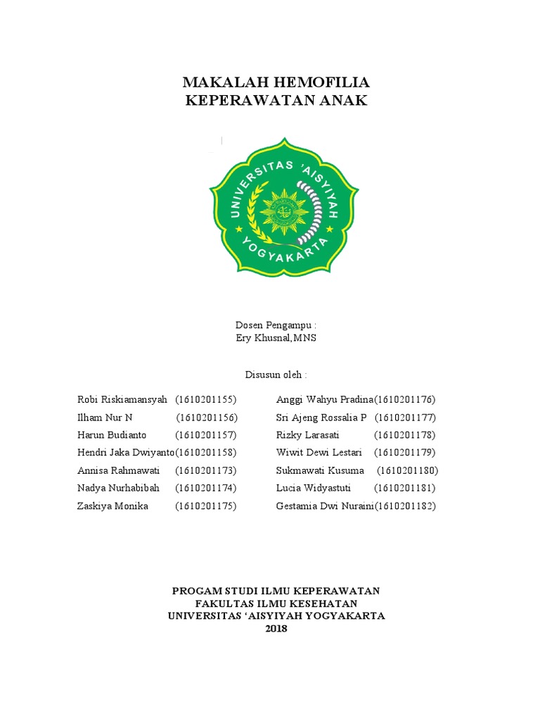 Tujuan penulisan makalah ini adalah untuk mengetahui apa pengertian hemofilia dan