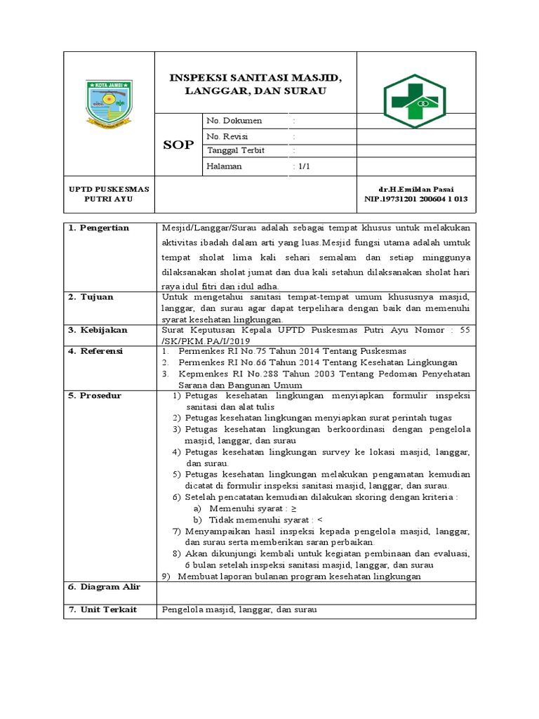 dicatat di formulir inspeksi sanitasi masjid, langgar, dan surau.