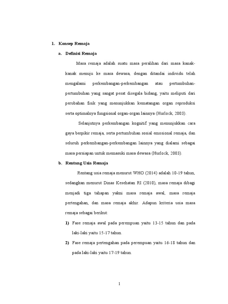 Rentang usia remaja menurut WHO (2014) adalah 10-19 tahun,