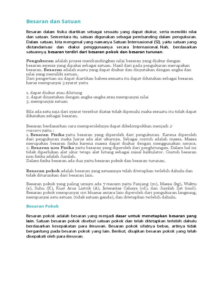 1. Besaran Fisika yaitu besaran yang diperoleh dari pengukuran. Karena diperoleh