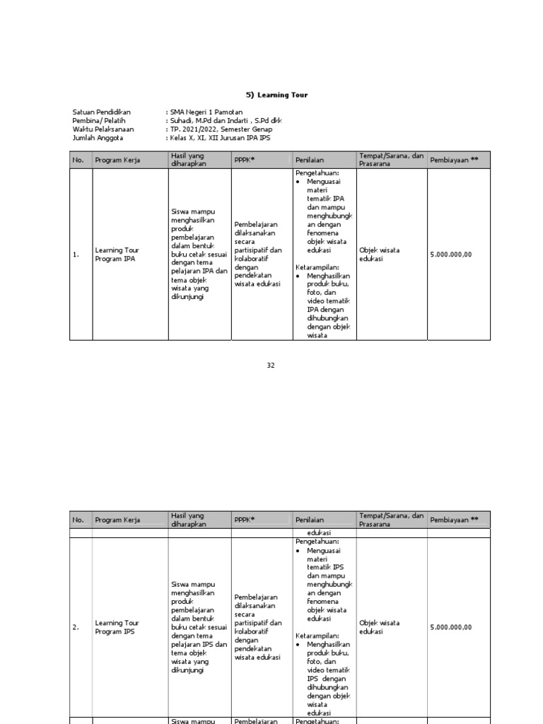 Sumber: Hasil Rapat Program Unggulan Sekolah oleh Tim PTMPS SMA Negeri 1 Pamotan, tahun 2021