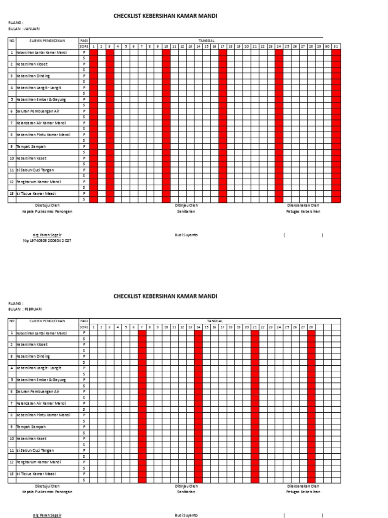 CHECKLIST KEBERSIHAN KAMAR MANDI