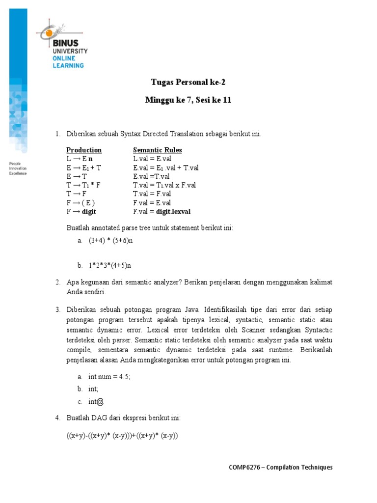 1. Diberikan sebuah Syntax Directed Translation sebagai berikut ini.