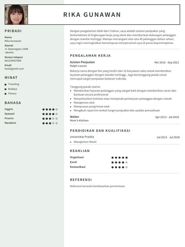PRIBADI Dengan pengalaman lebih dari 3 tahun, saya adalah asisten penjualan yang