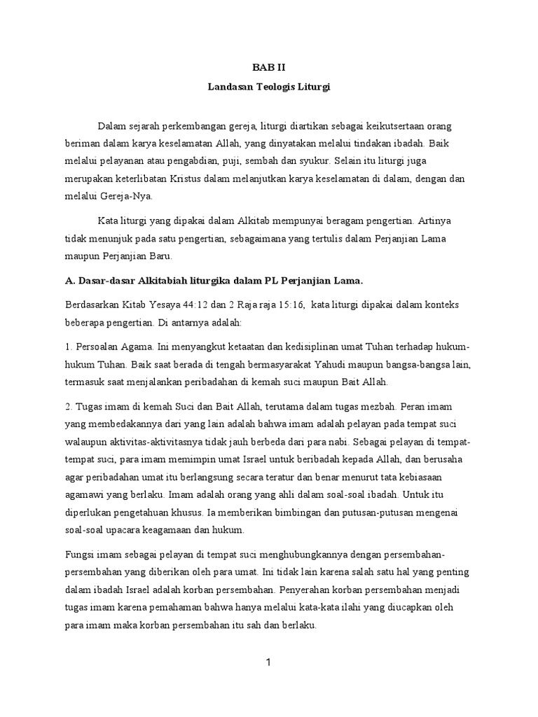 A. Dasar-dasar Alkitabiah liturgika dalam PL Perjanjian Lama.