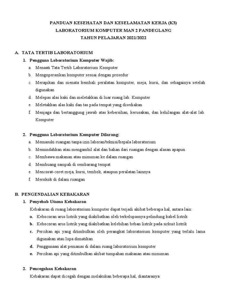 PANDUAN KESEHATAN DAN KESELAMATAN KERJA (K3)