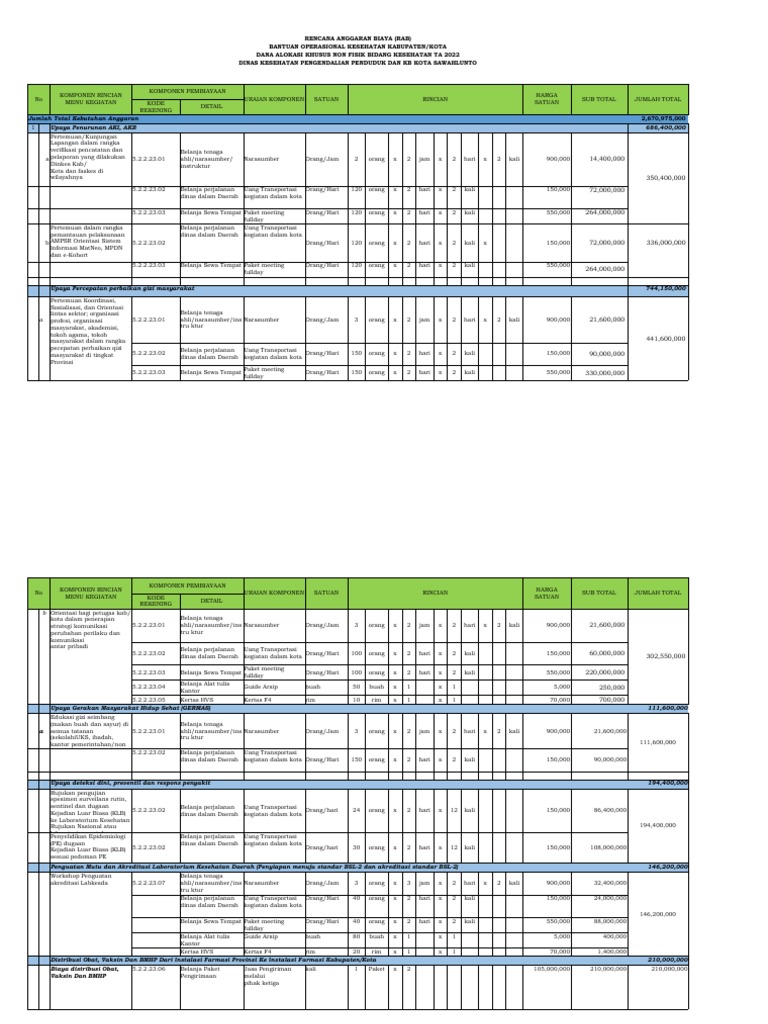 (COVID-I9) ditinqkat 5.2.2.23.02 Belanja perjalanan Uang Transportasi Orang/Hari 120 orang x 2 hari x 2 kali 150,000