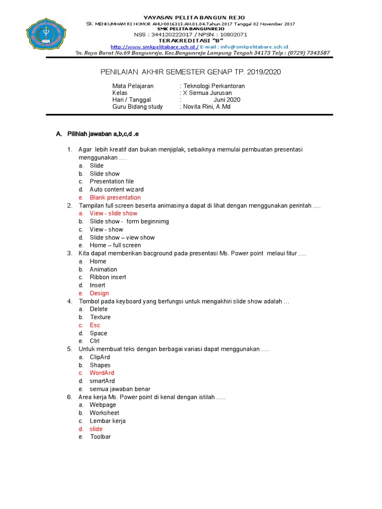 PENILAIAN AKHIR SEMESTER GENAP TP. 2019/2020