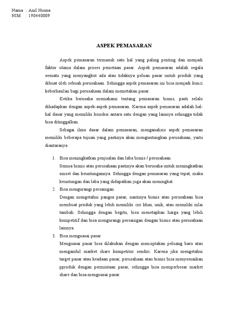 faktor utama dalam proses pemetaan pasar. Aspek pemasaran adalah segala