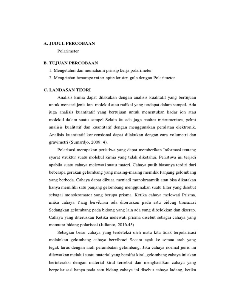 polarisasi disebut senyawa optis aktif. Pada percobaan ini sebelum dilakukan