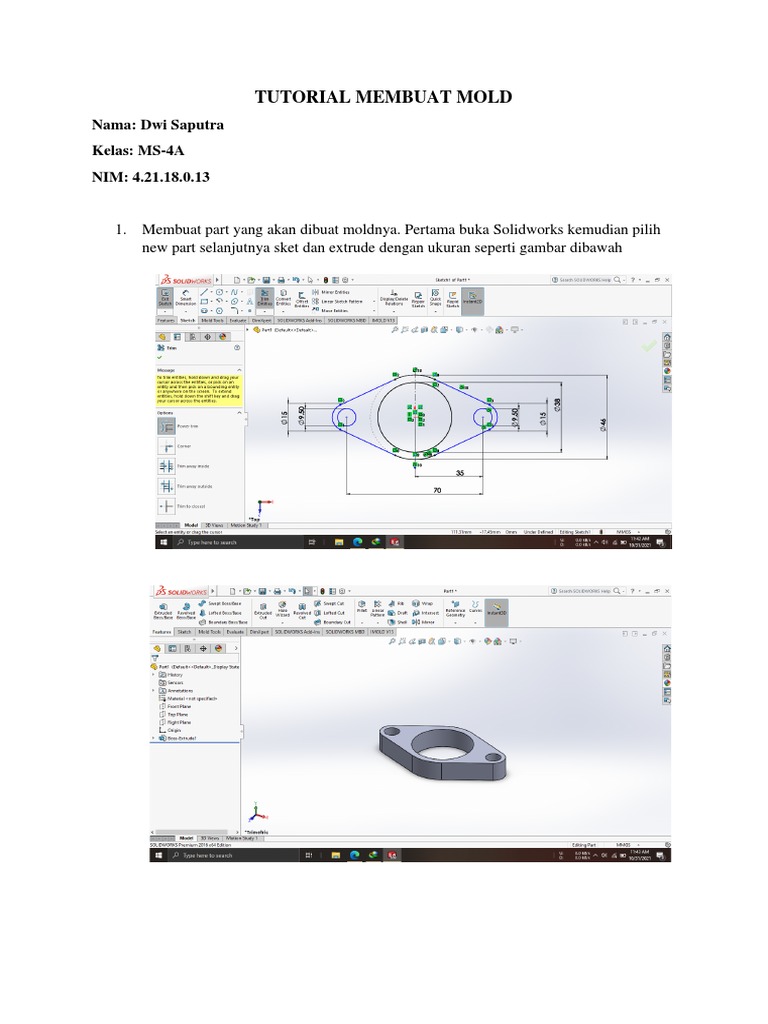 1. Membuat part yang akan dibuat moldnya. Pertama buka Solidworks kemudian pilih