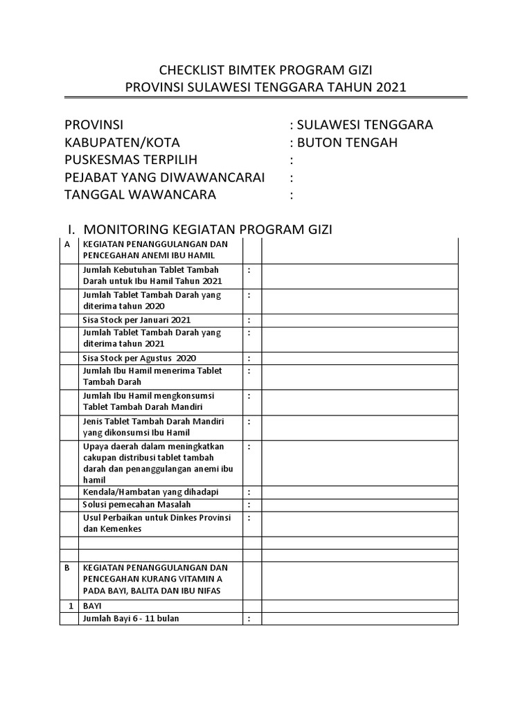 I. MONITORING KEGIATAN PROGRAM GIZI