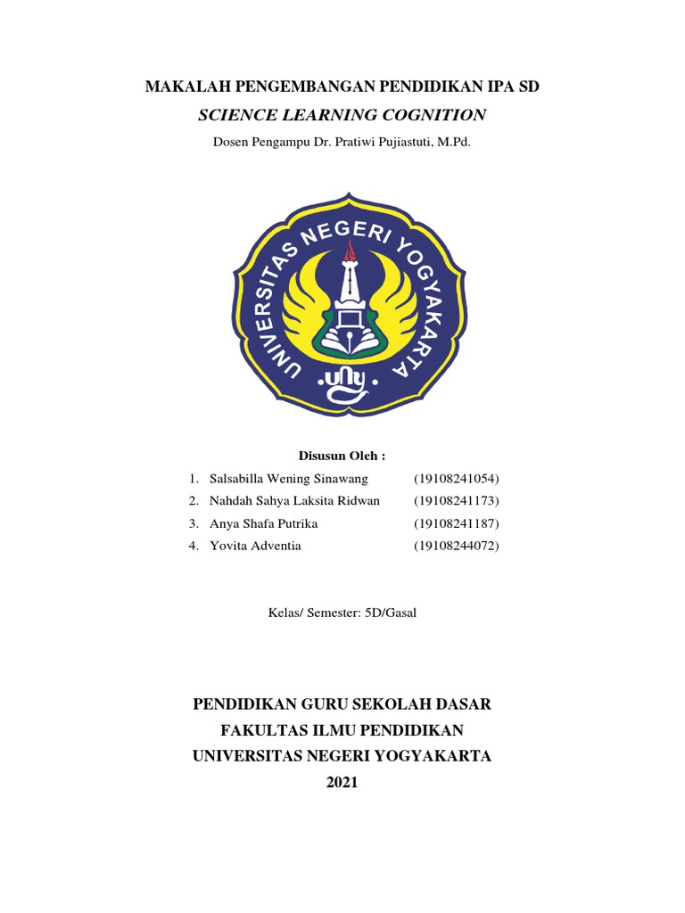 pembuatan makalah yang berjudul Science Learning Cognition adalah untuk menghasilkan