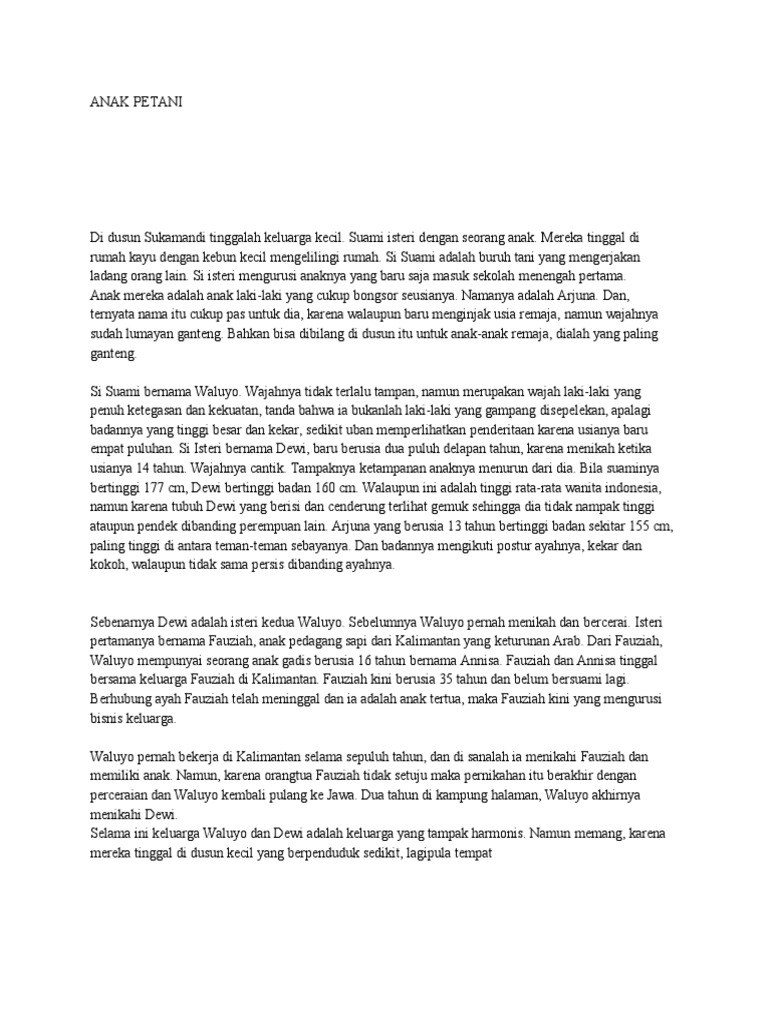 ladang orang lain. Si isteri mengurusi anaknya yang baru saja masuk sekolah menengah pertama.