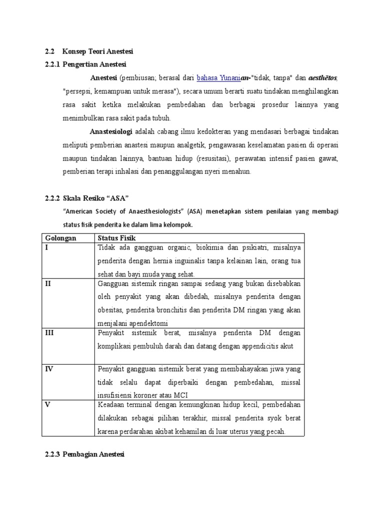 “American Society of Anaesthesiologists” (ASA) menetapkan sistem penilaian yang membagi