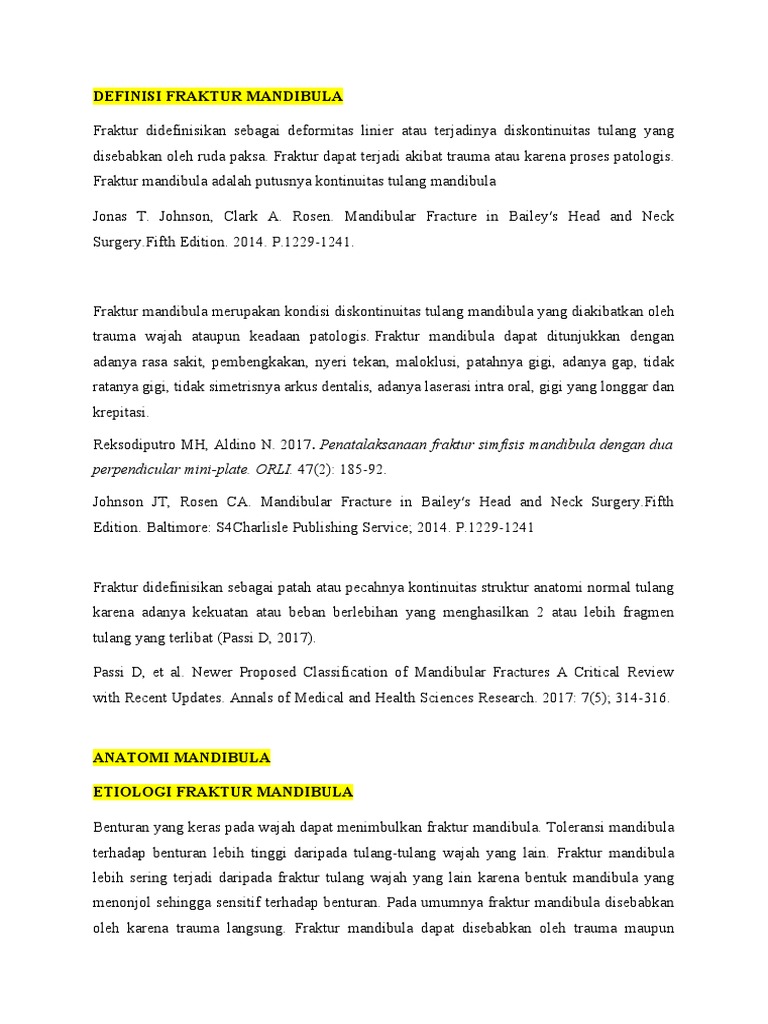 Fraktur mandibula merupakan kondisi diskontinuitas tulang mandibula yang diakibatkan oleh