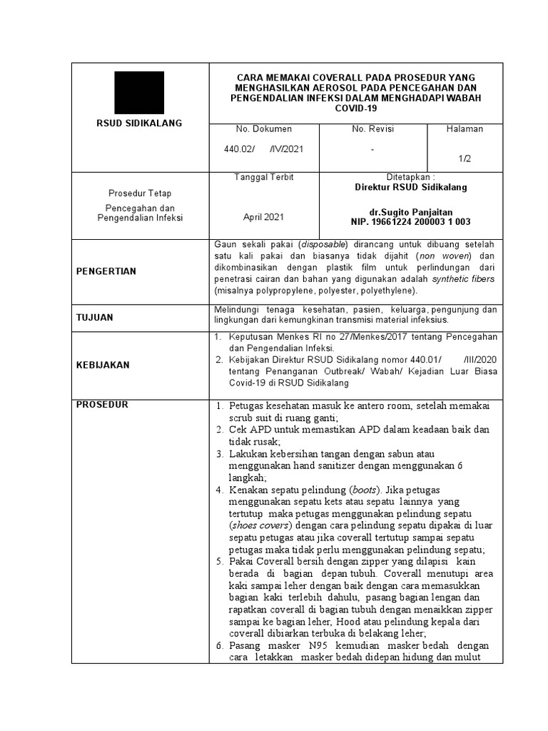 CARA MEMAKAI COVERALL PADA PROSEDUR YANG