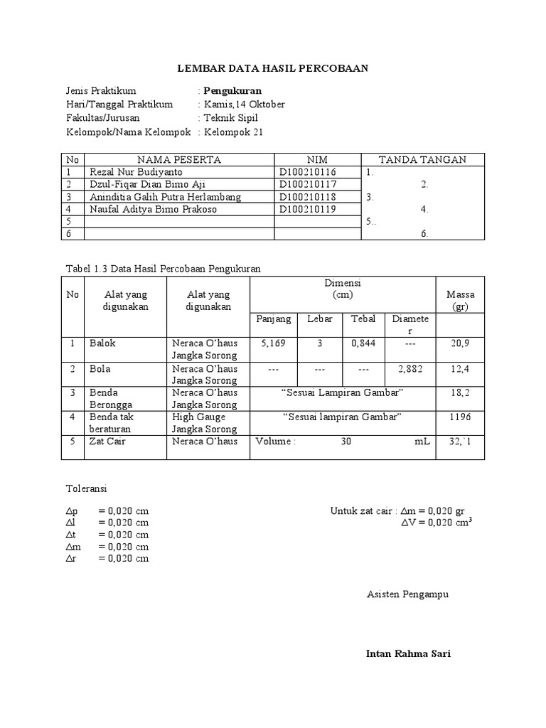 Tabel 1.3 Data Hasil Percobaan Pengukuran