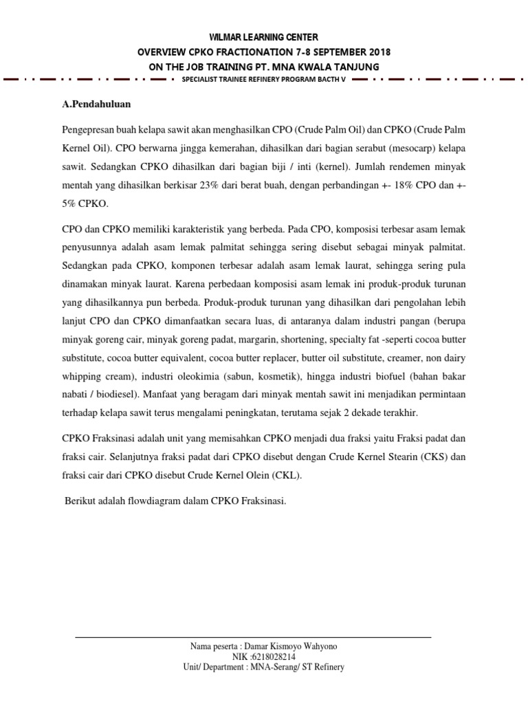 Berikut adalah flowdiagram dalam CPKO Fraksinasi.